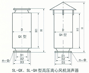 注:本系列消声器额定排汽压力按1.3MPa设计的,如排汽压力为0.8MPa,选用消声器应比排放管径大一级选用:排汽压力为2.0MPa时应比排放管小一级选用。